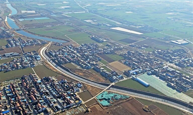 航拍下的國(guó)家重點(diǎn)工程西霞院水利樞紐輸水及灌區(qū)工程孟州市片區(qū)城區(qū)段。該工程歷經(jīng)五年多建設(shè),已全線完工并于2025年12月順利通過驗(yàn)收,進(jìn)入運(yùn)行管理新階段。白水平 攝