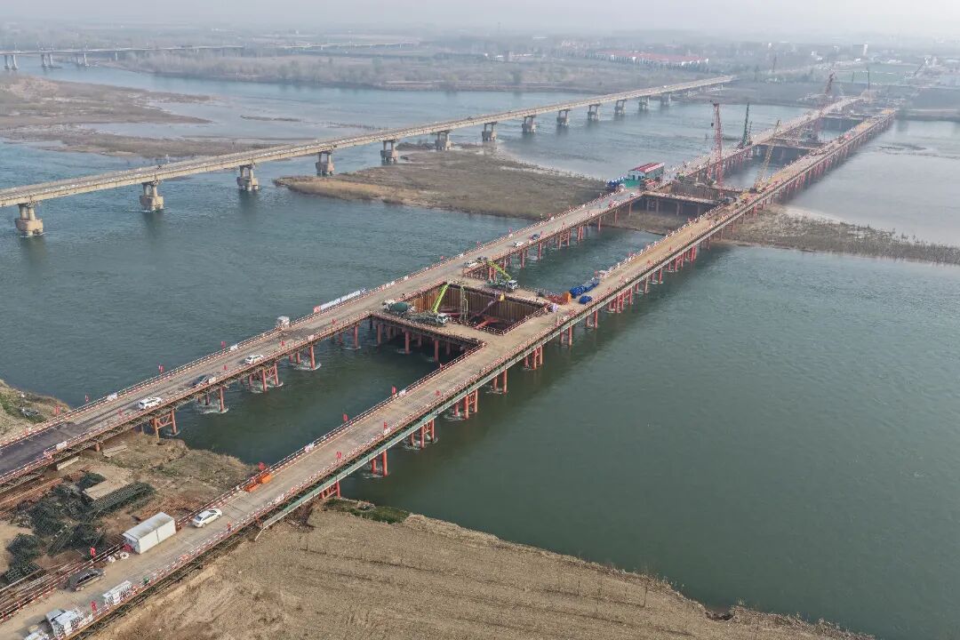 近日,由河南鐵建投集團河南城際公司建設、中國鐵設工程總承包管理、中鐵大橋局承建的焦洛平高鐵洛陽黃河公鐵大橋主橋首個水中承臺完成澆筑,標志著大橋水下基礎施工取得階段性勝利,為汛期前實現墩身出水、安全度汛筑牢根基。