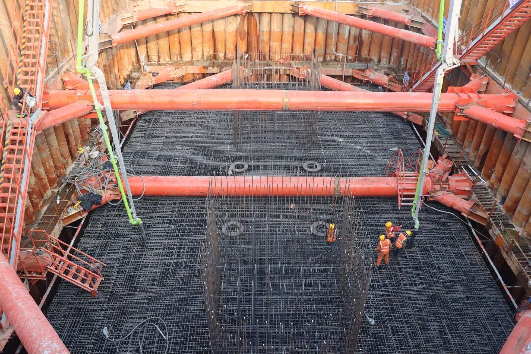 此次澆筑的189號水中墩承臺,是主橋的核心承重基礎,尺寸達28.2米×18.2米×4.5米,總混凝土方量達2300多立方米。為確保首個水中大體積承臺施工質量,河南城際公司組織項目部提前制定精細化責任矩陣清單,明確工程技術、安全、質量等各崗位職責,對混凝土澆筑速度、振搗深度、標高控制實施全程實時管控,同時創新構建“技術防控+智能監測”雙重保障體系,施工中首次在黃河主河道應用新型C9鎖口樁圍堰結構,通過樁體精密咬合設計,成功阻斷卵石層滲水通道,破解了傳統圍堰在復雜地質條件下易滲漏、難穩固的痛點;同步安裝深基坑圍堰變形智能監測系統,實現毫米級位移監測、0.1mm級沉降變形監測及整體傾斜預警,為承臺作業打造了穩定、安全的作業空間。針對大體積混凝土澆筑易產生溫縮裂縫紋問題,技術團隊配套啟用智能溫控系統,實時監測并調控澆筑溫度,結合分層振搗、保濕養護等工藝,有效控制裂縫風險,確保承臺結構強度與耐久性。